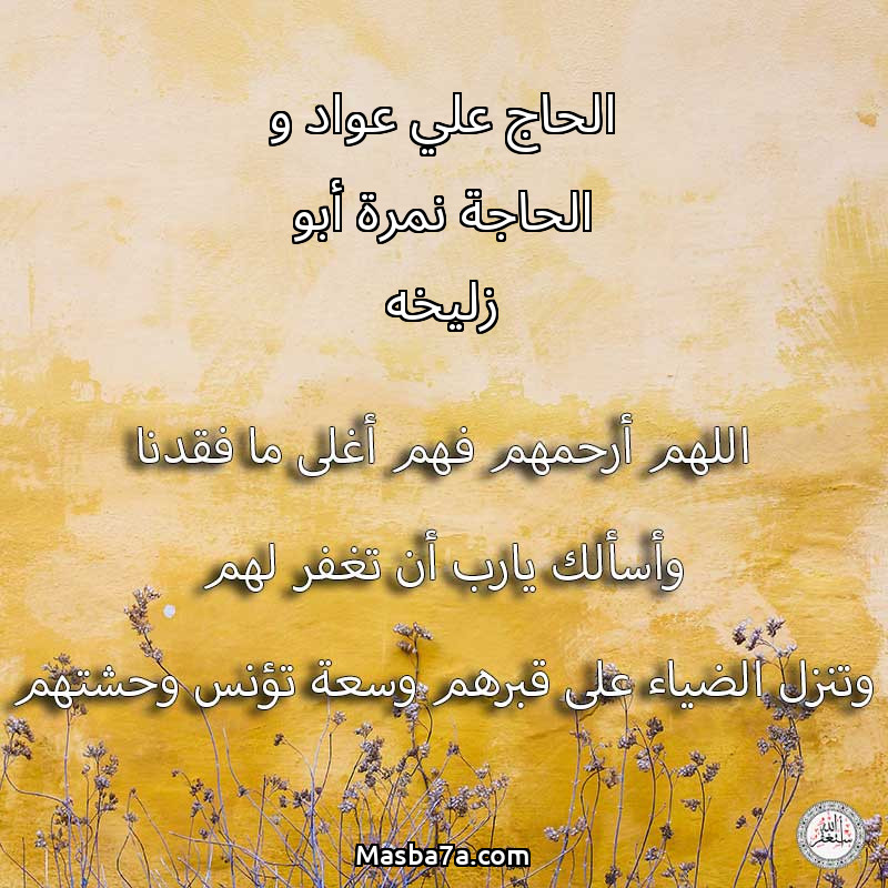 اللهم ارحم ( الحاج علي عواد و الحاجة نمرة أبو زليخه ) وانس وحشتهم واجمعنا بهم في جنتك ، اللهم ارحمهم بقدر شوقنا لهم اللهم ارحمهم واغفر لهم.