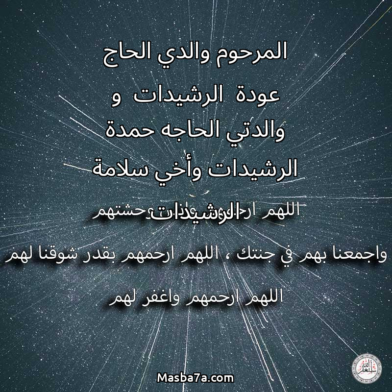 دعاء عن أرواح المرحومين المرحوم والدي الحاج عودة الرشيدات و والدتي الحاجه حمدة الرشيدات وأخي سلامة الرشيدات