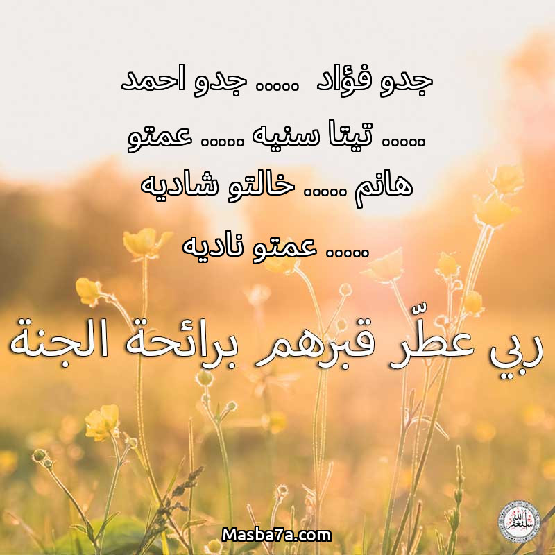 دعاء عن أرواح المرحومين جدو فؤاد ..... جدو احمد ..... تيتا سنيه ..... عمتو هانم ..... خالتو شاديه ..... عمتو ناديه