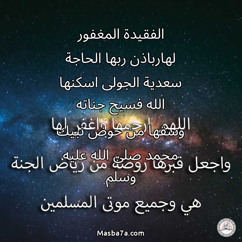 دعاء عن روح المرحومة الفقيدة المغفور لهارباذن ربها الحاجة سعدية الجولى اسكنها الله فسيح جناته وسقها من حوض نبيك محمد صلى الله عليه وسلم