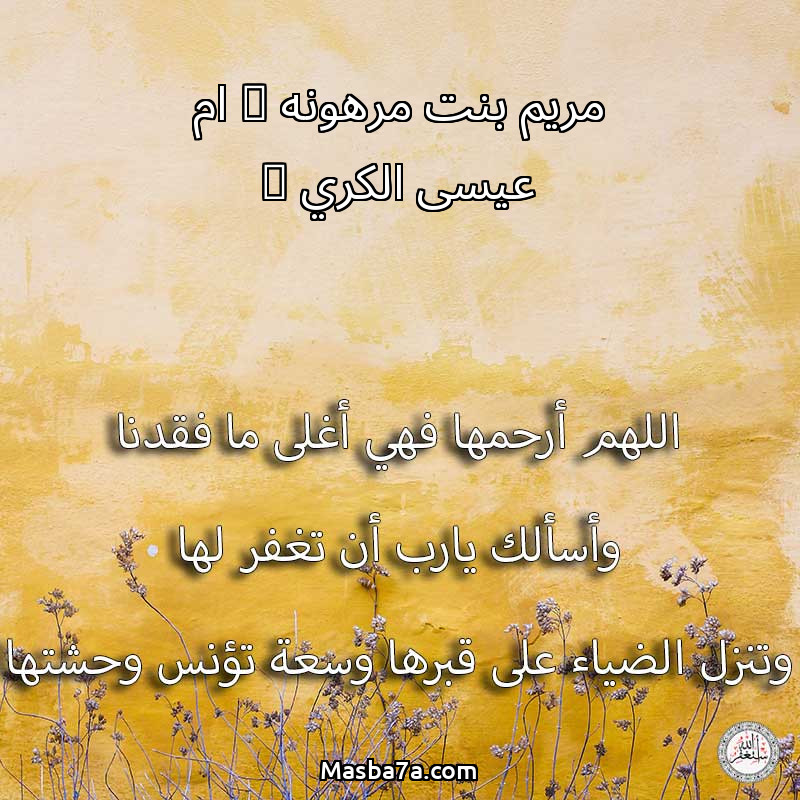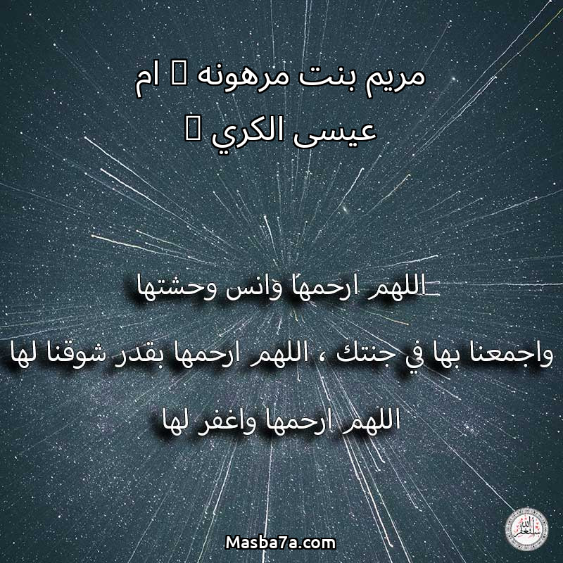 اللهم ارحم ( مريم بنت مرهونه ( ام عيسى الكري ) ) وانس وحشتها واجمعنا بها في جنتك ، اللهم ارحمها بقدر شوقنا لها اللهم ارحمها واغفر لها .