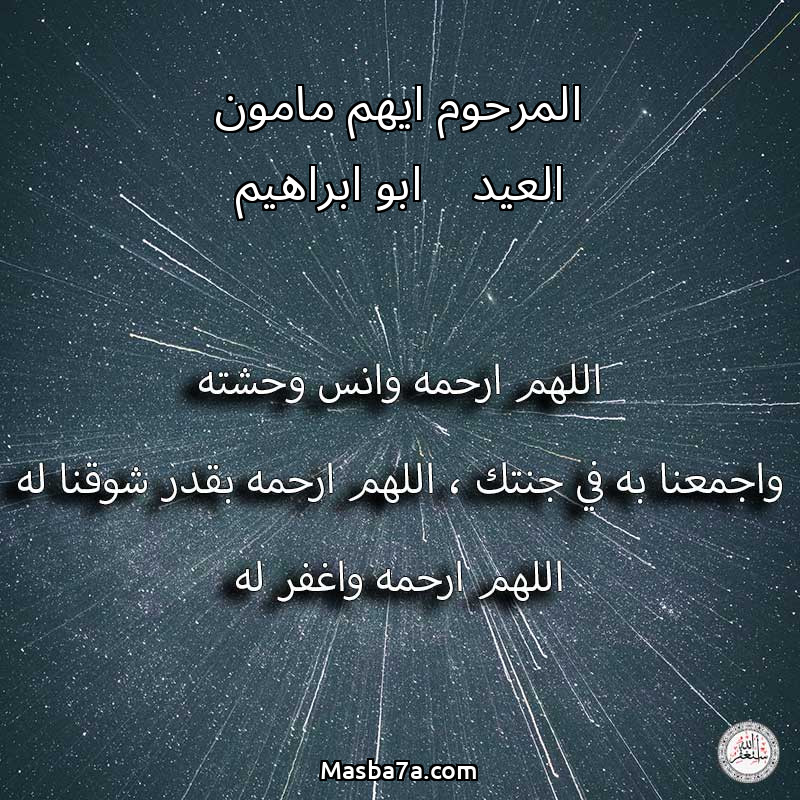اللهم ارحم ( المرحوم ايهم مامون العيد ابو ابراهيم ) وانس وحشته واجمعنا به في جنتك ، اللهم ارحمه بقدر شوقنا له اللهم ارحمه واغفر له .