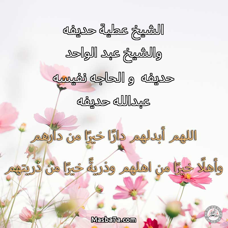 اللهم ارحم ( الشيخ عطية حديفه والشيخ عبد الواحد حديفه و الحاجه نفيسه عبدالله حديفه ) وانس وحشتهم واجمعنا بهم في جنتك ، اللهم ارحمهم بقدر شوقنا لهم اللهم ارحمهم واغفر لهم.