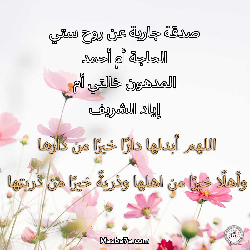 دعاء عن روح المرحومة صدقة جارية عن روح ستي الحاجة أم أحمد المدهون خالتي أم إياد الشريف
