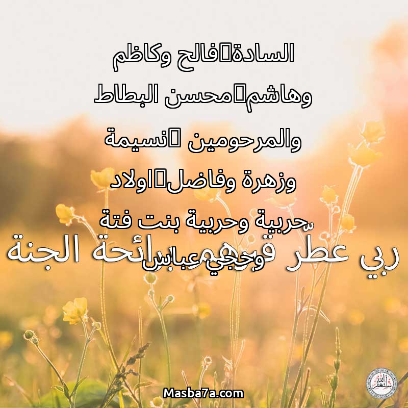 دعاء عن أرواح المرحومين السادة(فالح وكاظم وهاشم)محسن البطاط والمرحومين (نسيمة وزهرة وفاضل)اولاد حربية وحربية بنت فتة وحجي عباس