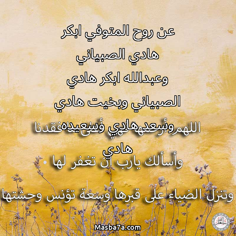 دعاء عن روح المرحومة عن روح المتوفي ابكر هادي الصبياني وعبدالله ابكر هادي الصبياني وبخيت هادي وسعد هادي وسعيده هادي