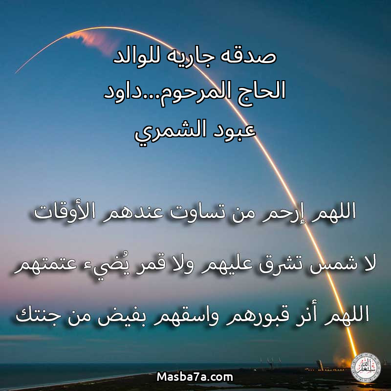 اللهم ارحم ( صدقه جاريه للوالد الحاج المرحوم...داود عبود الشمري ) وانس وحشته واجمعنا به في جنتك ، اللهم ارحمه بقدر شوقنا له اللهم ارحمه واغفر له .