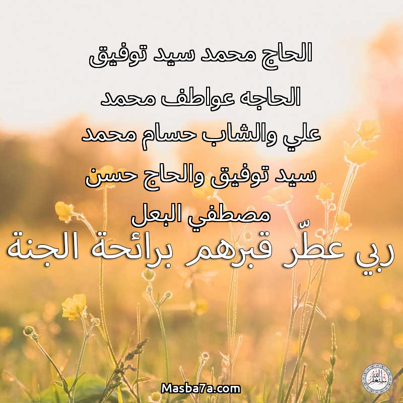 دعاء عن أرواح المرحومين الحاج محمد سيد توفيق الحاجه عواطف محمد علي والشاب حسام محمد سيد توفيق والحاج حسن مصطفي البعل