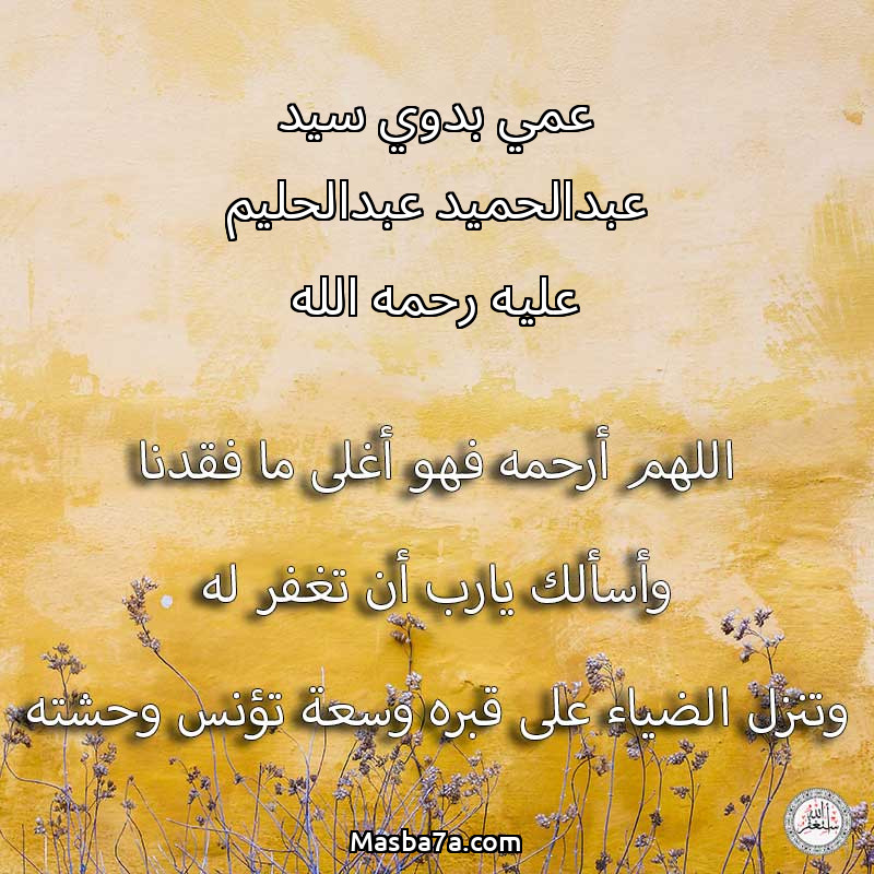 اللهم ارحم ( عمي بدوي سيد عبدالحميد عبدالحليم عليه رحمه الله ) وانس وحشته واجمعنا به في جنتك ، اللهم ارحمه بقدر شوقنا له اللهم ارحمه واغفر له .