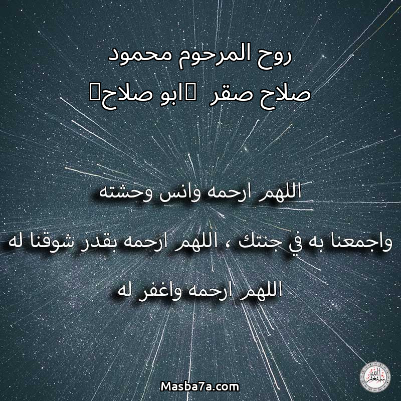 اللهم ارحم ( روح المرحوم محمود صلاح صقر -(ابو صلاح) ) وانس وحشته واجمعنا به في جنتك ، اللهم ارحمه بقدر شوقنا له اللهم ارحمه واغفر له .