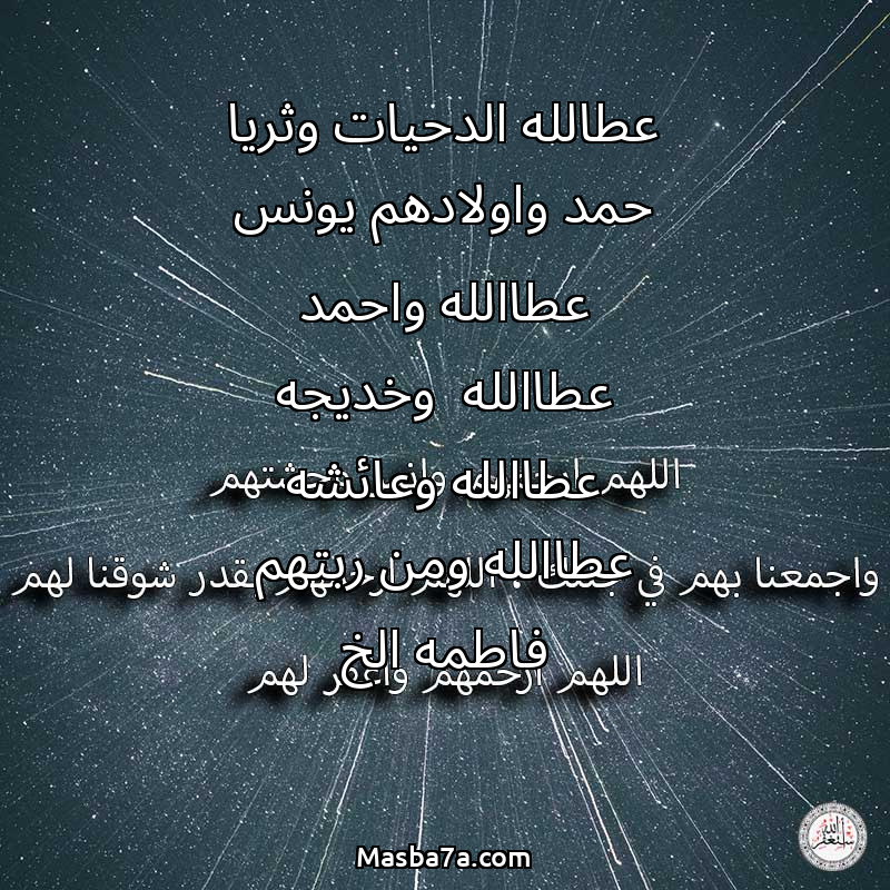دعاء عن أرواح المرحومين عطالله الدحيات وثريا حمد واولادهم يونس عطاالله واحمد عطاالله وخديجه عطاالله وعائشه عطاالله ومن ربتهم فاطمه الخ