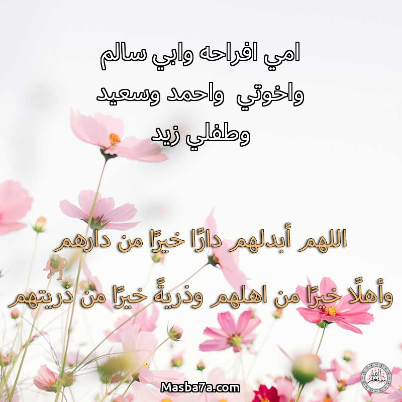 اللهم ارحم ( امي افراحه وابي سالم واخوتي واحمد وسعيد وطفلي زيد ) وانس وحشتهم واجمعنا بهم في جنتك ، اللهم ارحمهم بقدر شوقنا لهم اللهم ارحمهم واغفر لهم.