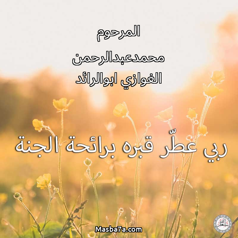 اللهم ارحم ( المرحوم محمدعبدالرحمن الغوازي ابوالرائد ) وانس وحشته واجمعنا به في جنتك ، اللهم ارحمه بقدر شوقنا له اللهم ارحمه واغفر له .
