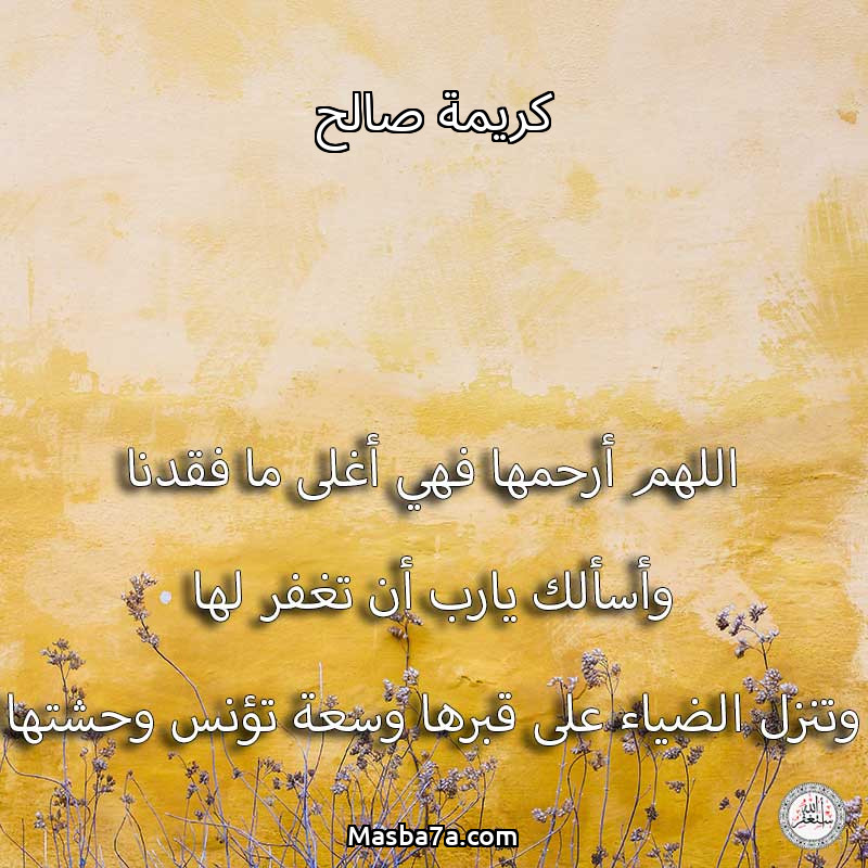اللهم ارحم ( كريمة صالح ) وانس وحشتها واجمعنا بها في جنتك ، اللهم ارحمها بقدر شوقنا لها اللهم ارحمها واغفر لها .