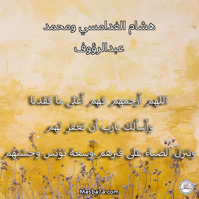اللهم ارحم ( هشام الغدامسي ومحمد عبدالرؤوف ) وانس وحشتهم واجمعنا بهم في جنتك ، اللهم ارحمهم بقدر شوقنا لهم اللهم ارحمهم واغفر لهم.