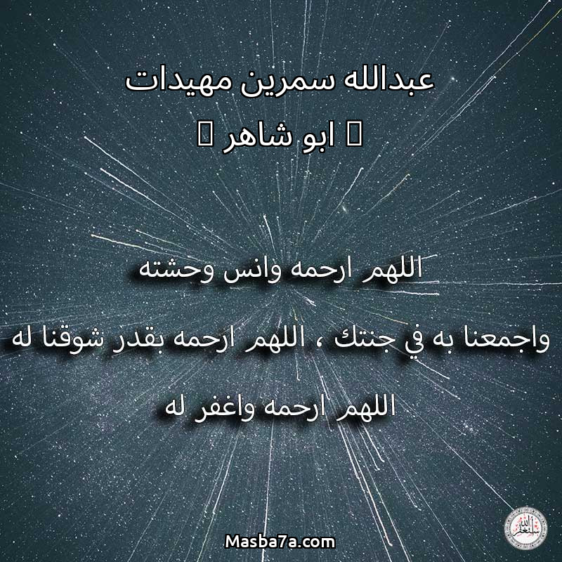 اللهم ارحم ( عبدالله سمرين مهيدات ( ابو شاهر ) ) وانس وحشته واجمعنا به في جنتك ، اللهم ارحمه بقدر شوقنا له اللهم ارحمه واغفر له .