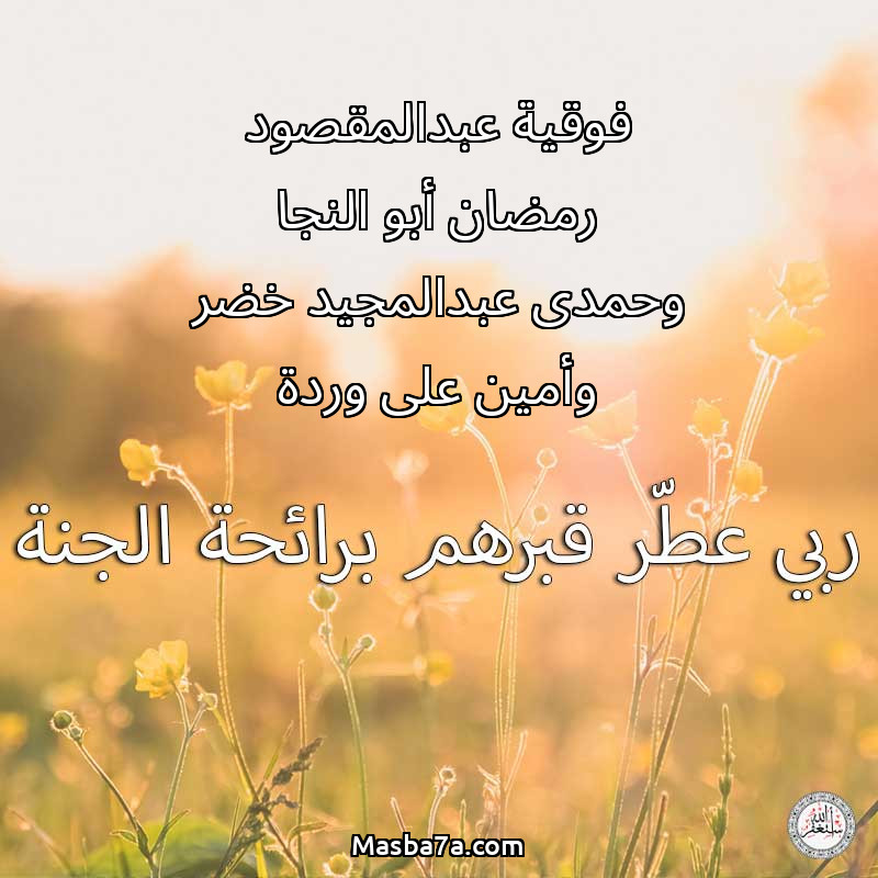 دعاء عن أرواح المرحومين فوقية عبدالمقصود رمضان أبو النجا وحمدى عبدالمجيد خضر وأمين على وردة
