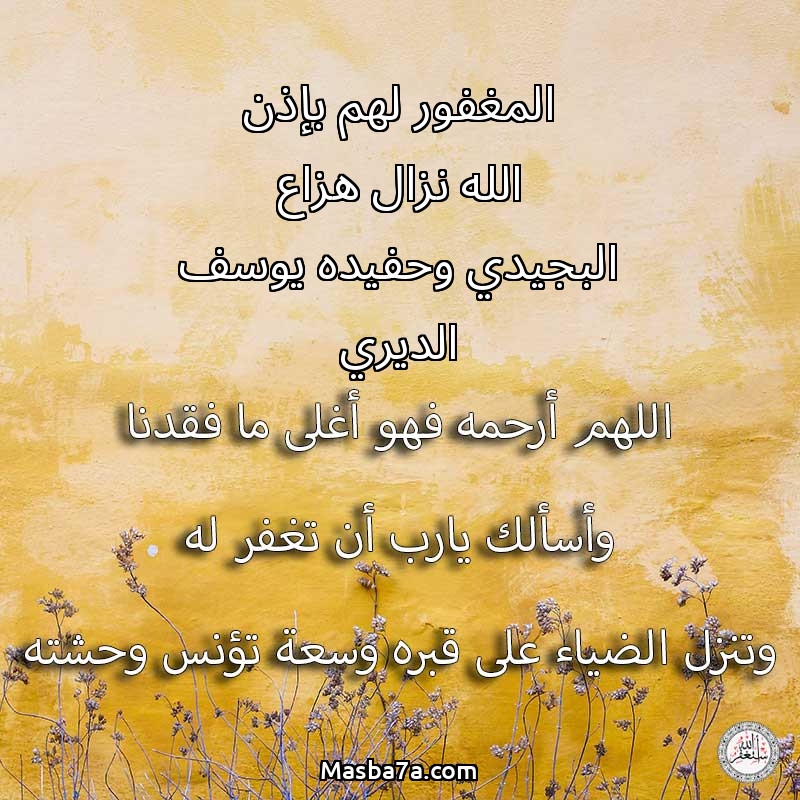 دعاء عن روح المرحوم المغفور لهم بإذن الله نزال هزاع البجيدي وحفيده يوسف الديري