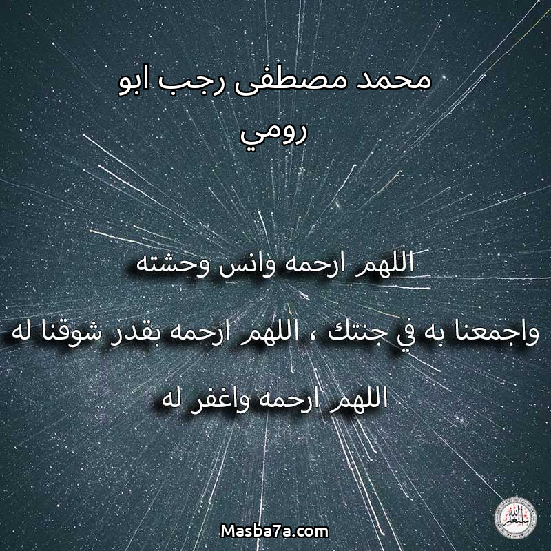 اللهم ارحم ( محمد مصطفى رجب ابو رومي ) وانس وحشته واجمعنا به في جنتك ، اللهم ارحمه بقدر شوقنا له اللهم ارحمه واغفر له .