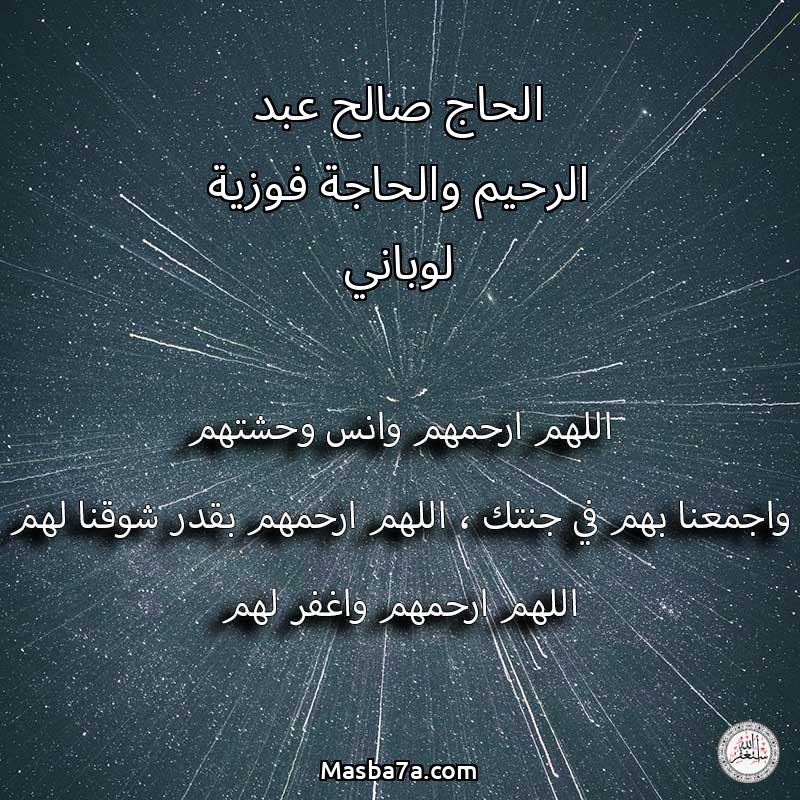 دعاء عن أرواح المرحومين الحاج صالح عبد الرحيم والحاجة فوزية لوباني
