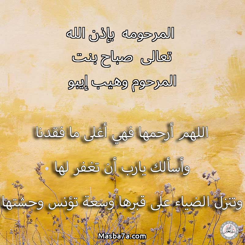 دعاء عن روح المرحومة المرحومه بإذن الله تعالى صباح بنت المرحوم وهيب إيبو
