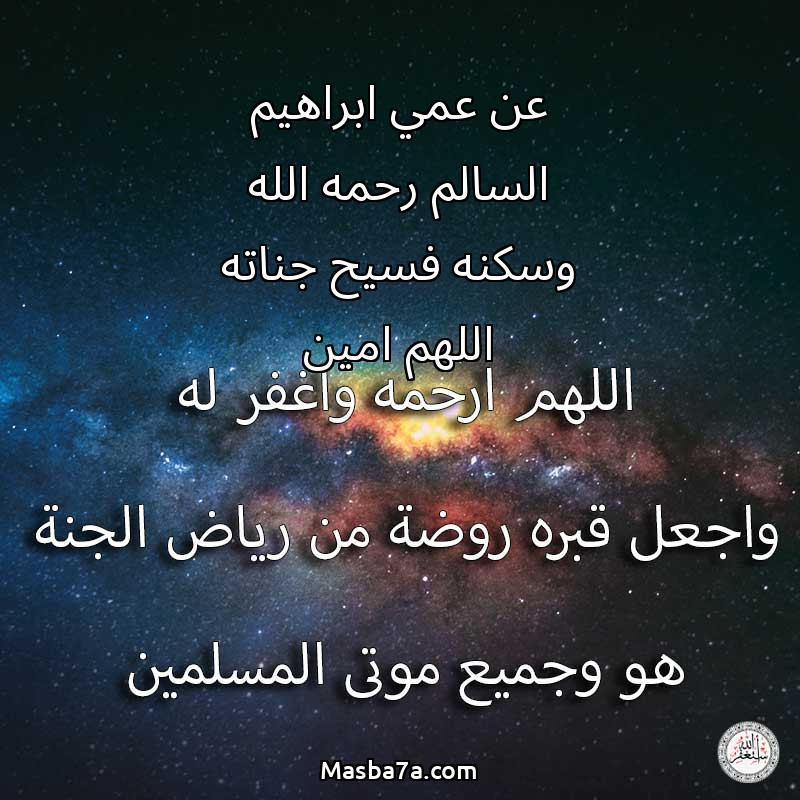 دعاء عن روح المرحوم عن عمي ابراهيم السالم رحمه الله وسكنه فسيح جناته اللهم امين