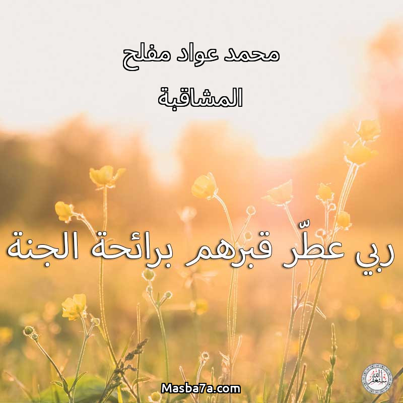 اللهم ارحم ( محمد عواد مفلح المشاقبة / فضا كثلوم مفلح المشاقبة ) وانس وحشتهم واجمعنا بهم في جنتك ، اللهم ارحمهم بقدر شوقنا لهم اللهم ارحمهم واغفر لهم.