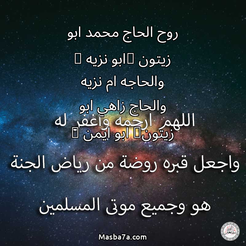 دعاء عن روح المرحوم روح الحاج محمد ابو زيتون (ابو نزيه ) والحاجه ام نزيه والحاج زاهي ابو زيتون( ابو ايمن )
