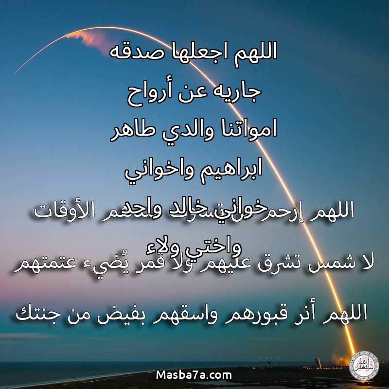 دعاء عن أرواح المرحومين اللهم اجعلها صدقه جاريه عن أرواح امواتنا والدي طاهر ابراهيم واخواني خواني خالد واحد واختي ولاء
