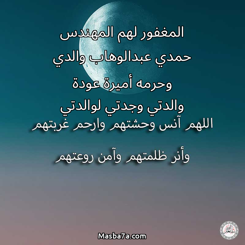 دعاء عن أرواح المرحومين المغفور لهم المهندس حمدي عبدالوهاب والدي وحرمه أميرة عودة والدتي وجدتي لوالدتي