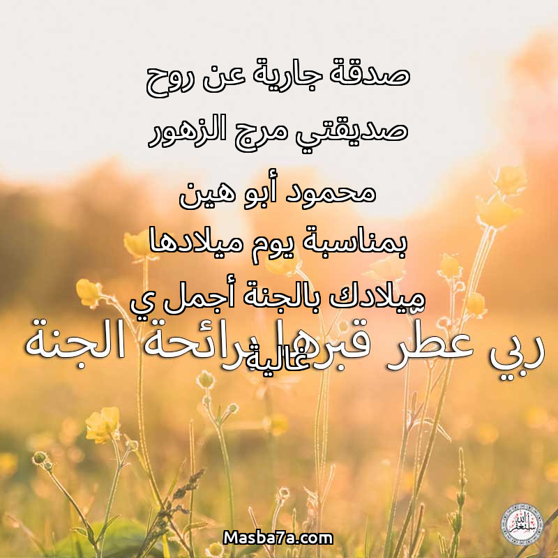 دعاء عن روح المرحومة صدقة جارية عن روح صديقتي مرج الزهور محمود أبو هين بمناسبة يوم ميلادها ميلادك بالجنة أجمل ي غالية