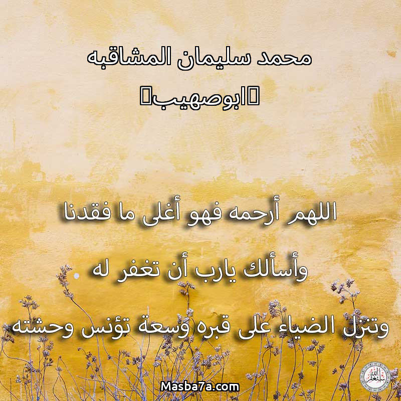 اللهم ارحم ( محمد سليمان المشاقبه (ابوصهيب) ) وانس وحشته واجمعنا به في جنتك ، اللهم ارحمه بقدر شوقنا له اللهم ارحمه واغفر له .