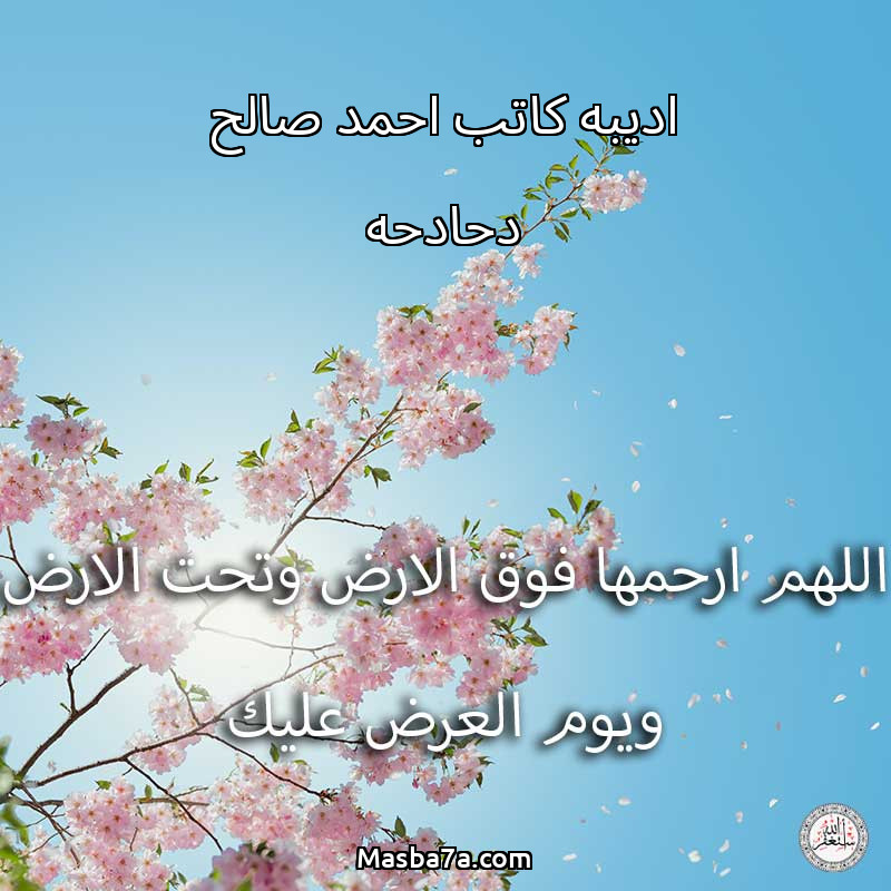 اللهم ارحم ( اديبه كاتب احمد صالح دحادحه ) وانس وحشتها واجمعنا بها في جنتك ، اللهم ارحمها بقدر شوقنا لها اللهم ارحمها واغفر لها .