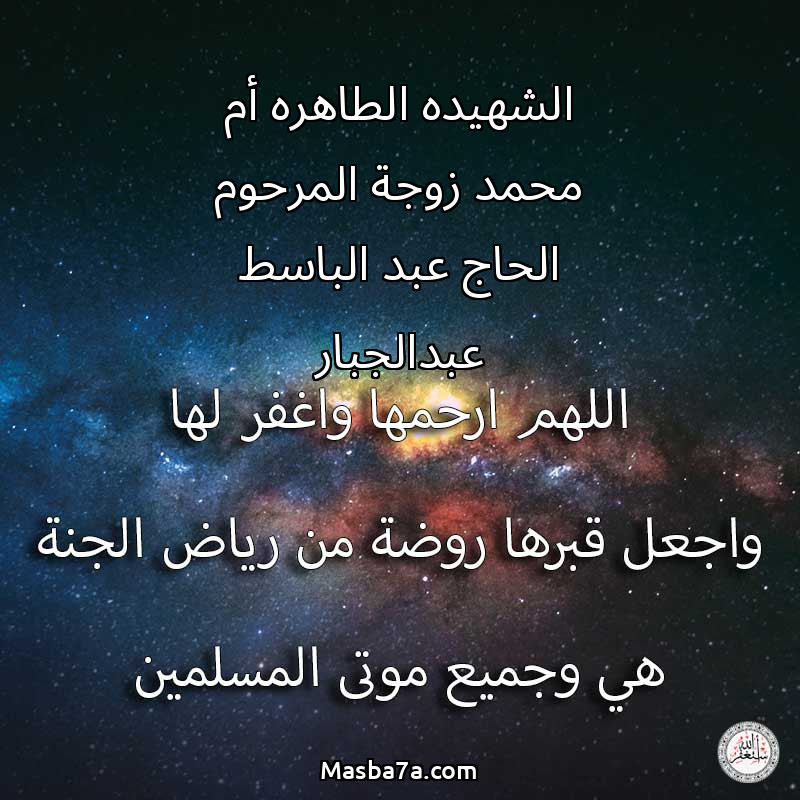 دعاء عن روح المرحومة الشهيده الطاهره أم محمد زوجة المرحوم الحاج عبد الباسط عبدالجبار