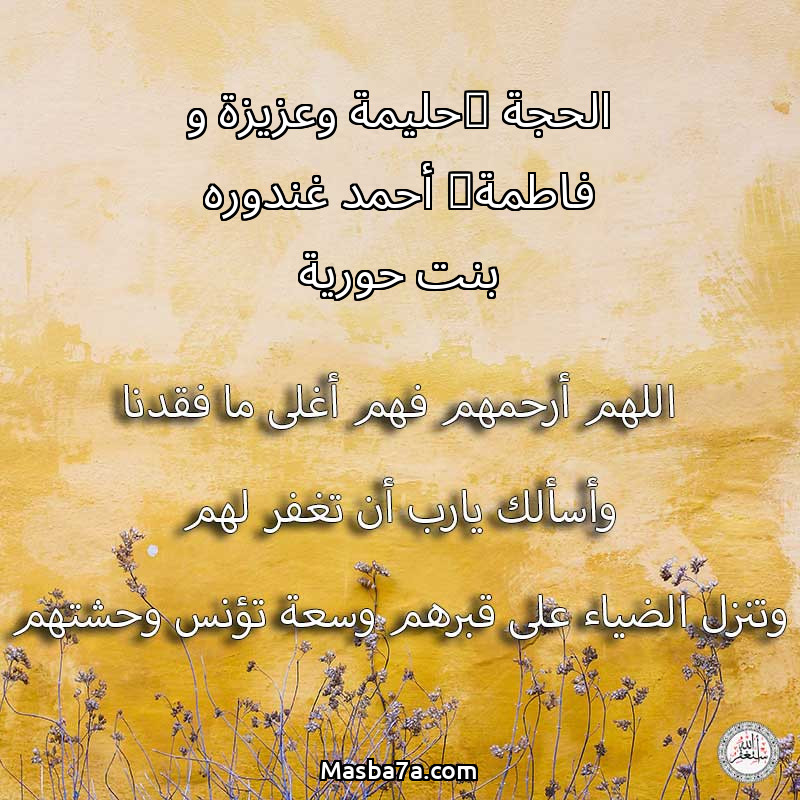 دعاء عن أرواح المرحومين الحجة (حليمة وعزيزة و فاطمة) أحمد غندوره بنت حورية