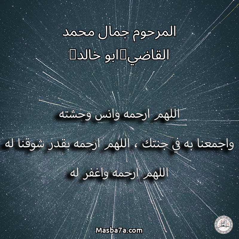 اللهم ارحم ( المرحوم جمال محمد القاضي(ابو خالد) ) وانس وحشته واجمعنا به في جنتك ، اللهم ارحمه بقدر شوقنا له اللهم ارحمه واغفر له .