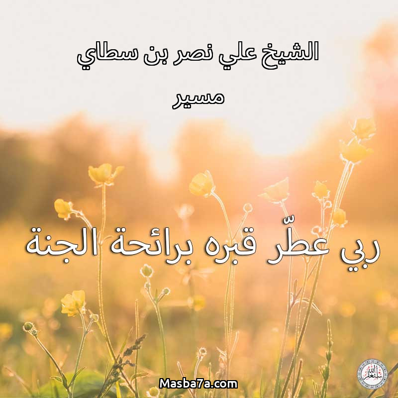 اللهم ارحم ( الشيخ علي نصر بن سطاي مسير ) وانس وحشته واجمعنا به في جنتك ، اللهم ارحمه بقدر شوقنا له اللهم ارحمه واغفر له .
