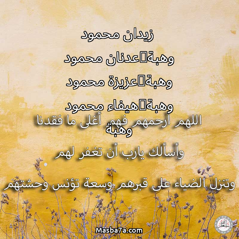 دعاء عن أرواح المرحومين زيدان محمود وهبة_عدنان محمود وهبة_عزيزة محمود وهبة_هيفاء محمود وهبة