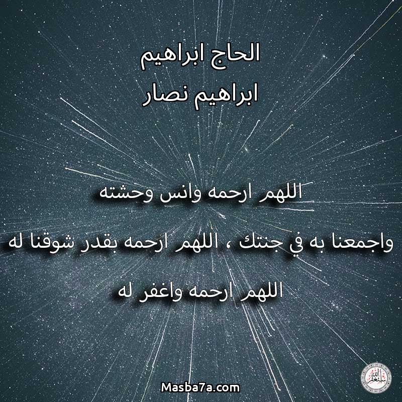 اللهم ارحم ( الحاج ابراهيم ابراهيم نصار ) وانس وحشته واجمعنا به في جنتك ، اللهم ارحمه بقدر شوقنا له اللهم ارحمه واغفر له .