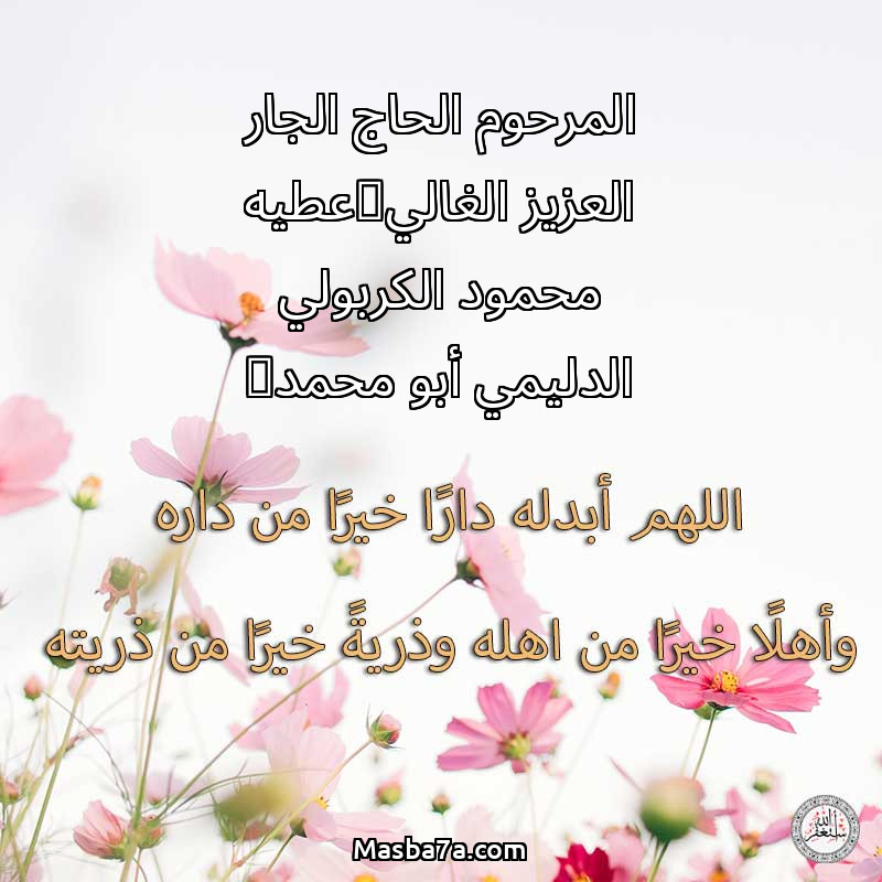 دعاء عن روح المرحوم المرحوم الحاج الجار العزيز الغالي(عطيه محمود الكربولي الدليمي أبو محمد)