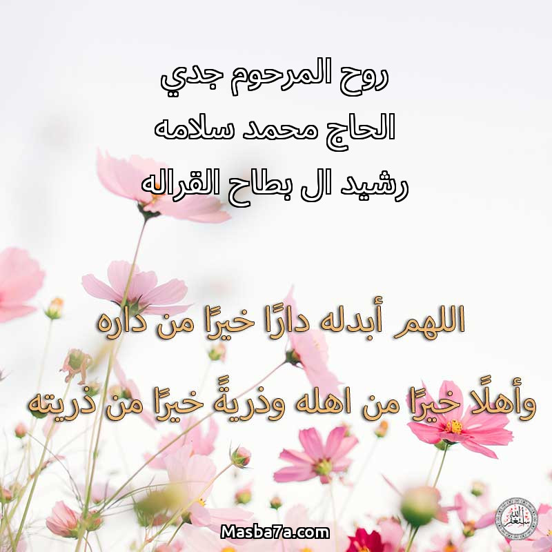 اللهم ارحم ( روح المرحوم جدي الحاج محمد سلامه رشيد ال بطاح القراله ) وانس وحشته واجمعنا به في جنتك ، اللهم ارحمه بقدر شوقنا له اللهم ارحمه واغفر له .