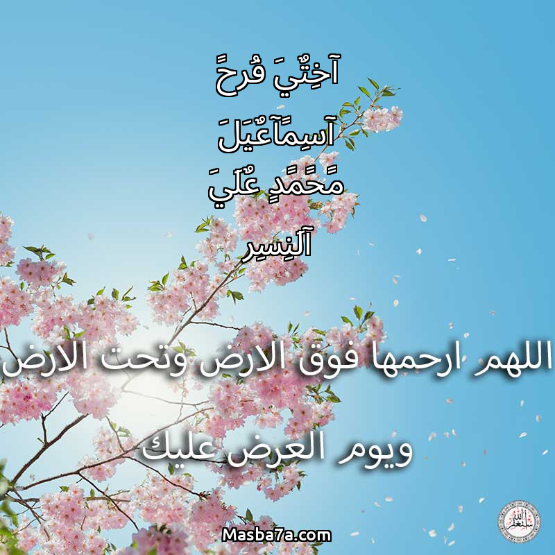 دعاء عن روح المرحومة آخِتٌيَ فُرحً آسِمًآعٌيَلَ مًحًمًدٍ عٌلَيَ آلَنِسِر