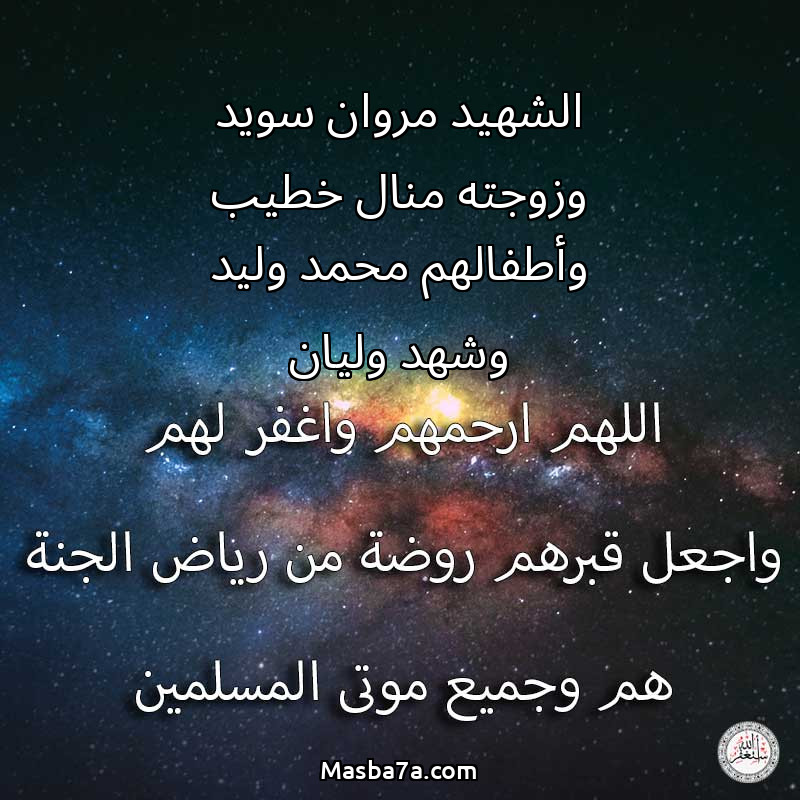 دعاء عن أرواح المرحومين الشهيد مروان سويد وزوجته منال خطيب وأطفالهم محمد وليد وشهد وليان