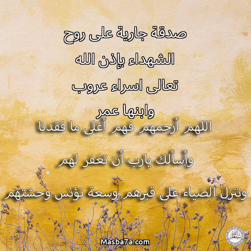 دعاء عن أرواح المرحومين صدقة جارية على روح الشهداء بإذن الله تعالى اسراء عروب وابنها عمر