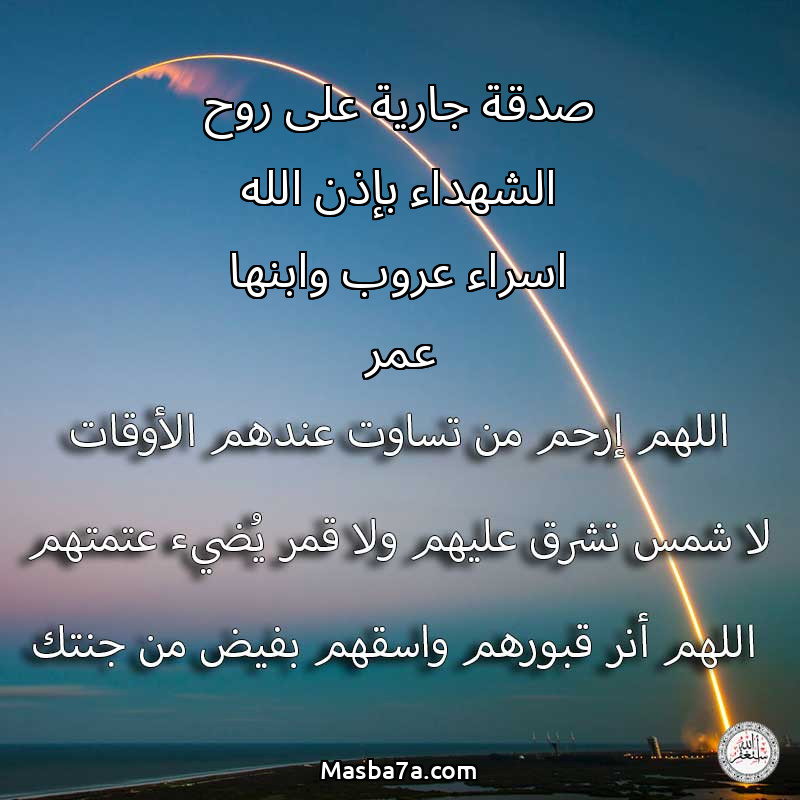 اللهم ارحم ( صدقة جارية على روح الشهداء بإذن الله اسراء عروب وابنها عمر ) وانس وحشتهم واجمعنا بهم في جنتك ، اللهم ارحمهم بقدر شوقنا لهم اللهم ارحمهم واغفر لهم.