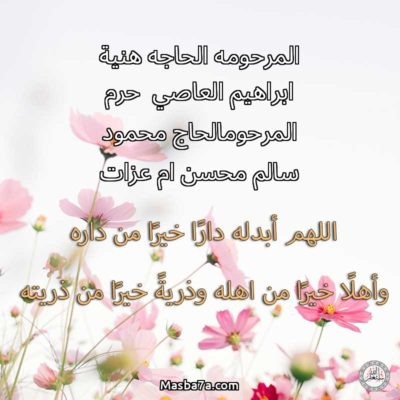 دعاء عن روح المرحوم المرحومه الحاجه هنية ابراهيم العاصي حرم المرحومالحاج محمود سالم محسن ام عزات