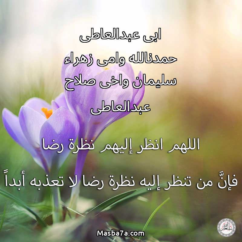 اللهم ارحم ( ابى عبدالعاطى حمدنالله وامى زهراء سليمان واخى صلاح عبدالعاطى ) وانس وحشتهم واجمعنا بهم في جنتك ، اللهم ارحمهم بقدر شوقنا لهم اللهم ارحمهم واغفر لهم.