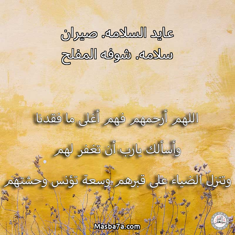 اللهم ارحم ( عايد السلامه. صيران سلامه. شوفه المفلح ) وانس وحشتهم واجمعنا بهم في جنتك ، اللهم ارحمهم بقدر شوقنا لهم اللهم ارحمهم واغفر لهم.