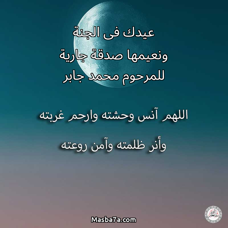 اللهم ارحم ( عيدك فى الجنة ونعيمها صدقة جارية للمرحوم محمد جابر ) وانس وحشته واجمعنا به في جنتك ، اللهم ارحمه بقدر شوقنا له اللهم ارحمه واغفر له .