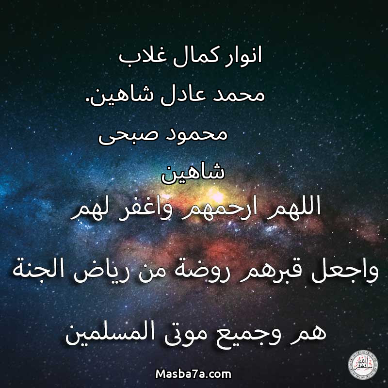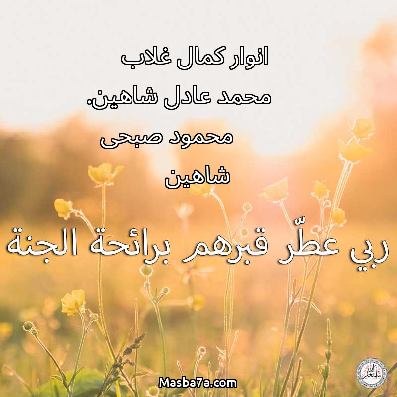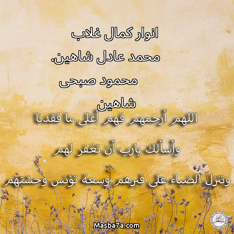 اللهم ارحم ( انوار كمال غلاب محمد عادل شاهين. محمود صبحى شاهين ) وانس وحشتهم واجمعنا بهم في جنتك ، اللهم ارحمهم بقدر شوقنا لهم اللهم ارحمهم واغفر لهم.